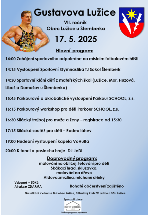 Úvod > Obec > Aktuality > Akce v okolních obcích - Gustavova Lužice 17.5.2025 od 14:00 hod.