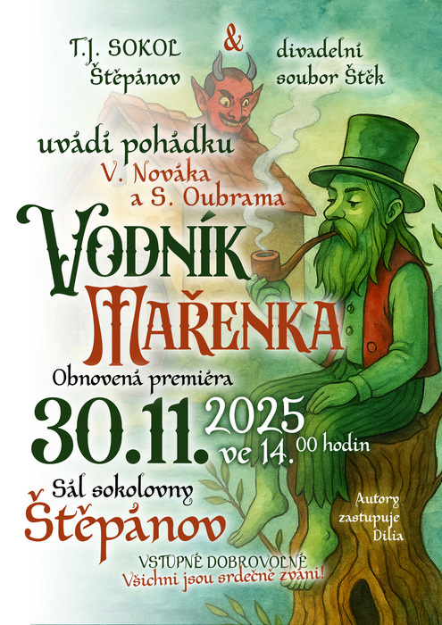 Divadelní představení se uskuteční v neděli 30.11.2025 ve 14:00 hodin - sál sokolovny ve Štěpánově.